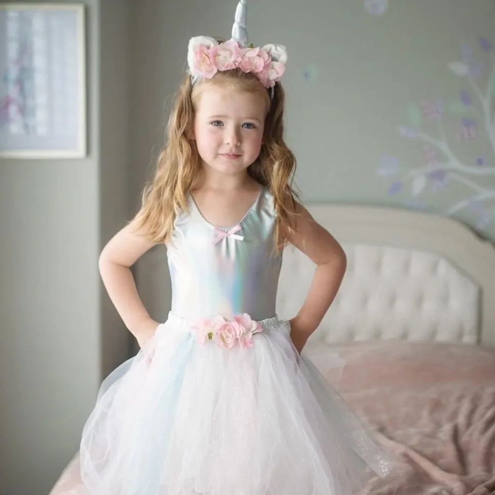 Great Pretenders Shimmer Unicorn Jurk & Diadeem Pink size 5-6
