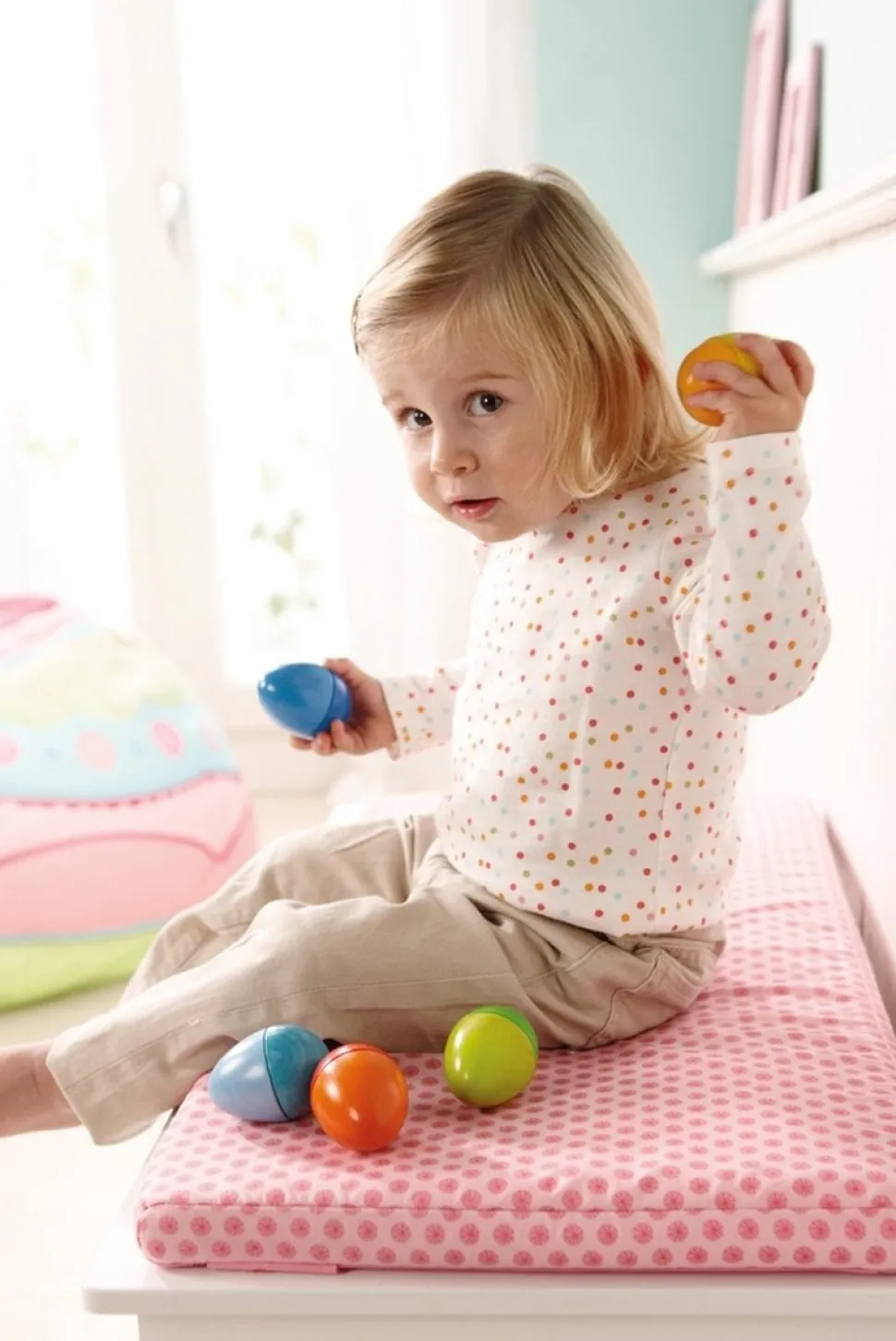 Rammelen, ratelen, klepperen, piepen of rinkelen… wat mag het zijn? Elk muziekei maakt een ander geluid. Of er nu één of twee tegelijk worden geschud, ze zorgen voor een heleboel ritmisch plezier. Zo wordt muziek maken kinderspel!