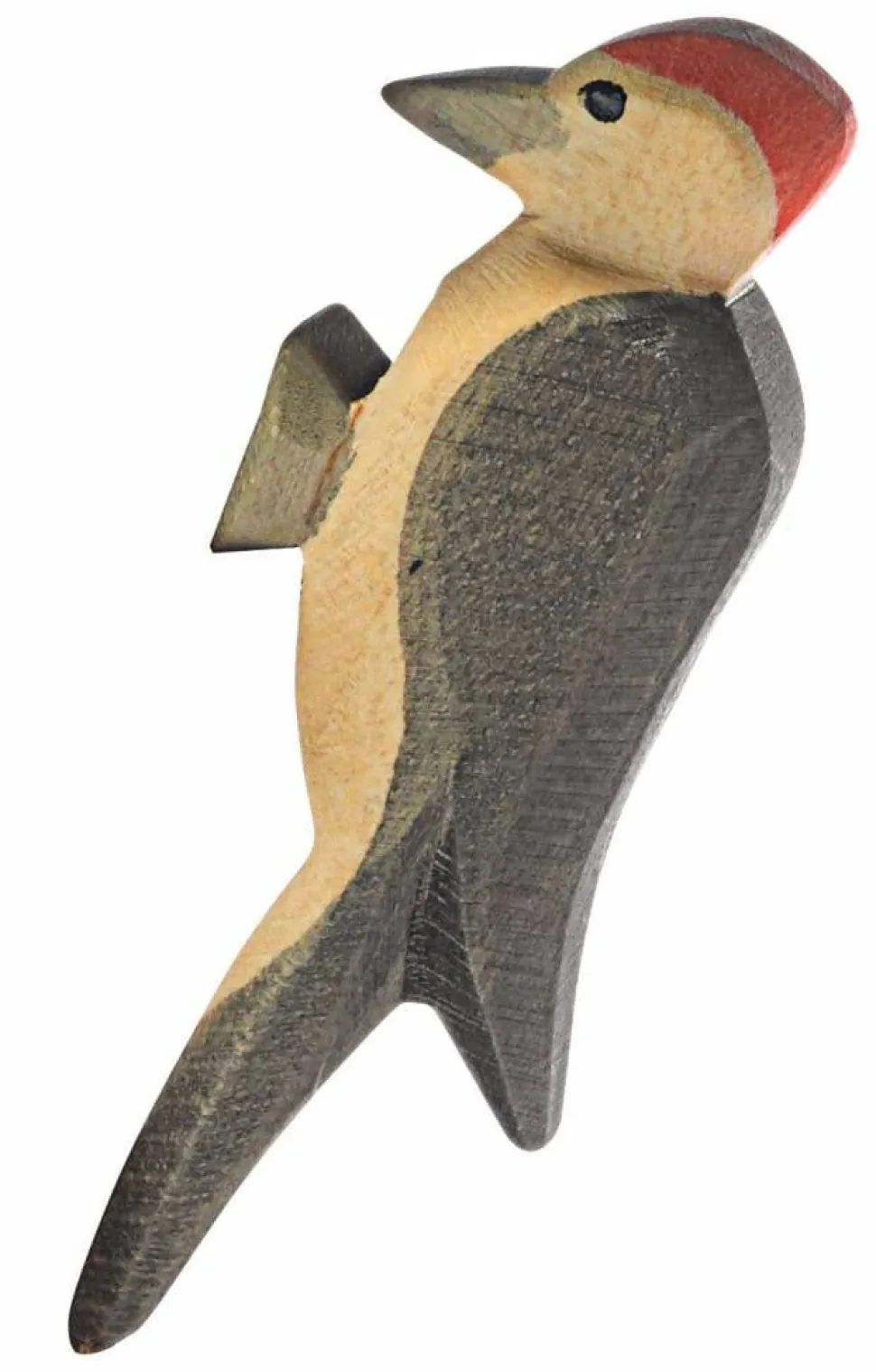 Deze spechtkan tegen de boom zitten, komt uit de reeks bos- en velddieren van Ostheimer. Hoogte: 7.5cm