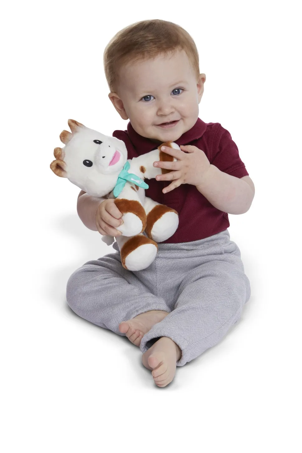 Een superzachte Sophie de Giraf knuffel. De knuffel is 20 cm hoog en kan dankzij de speciale vulling in de poten staan en ook zitten. De knuffel is wasbaar op 30 graden.