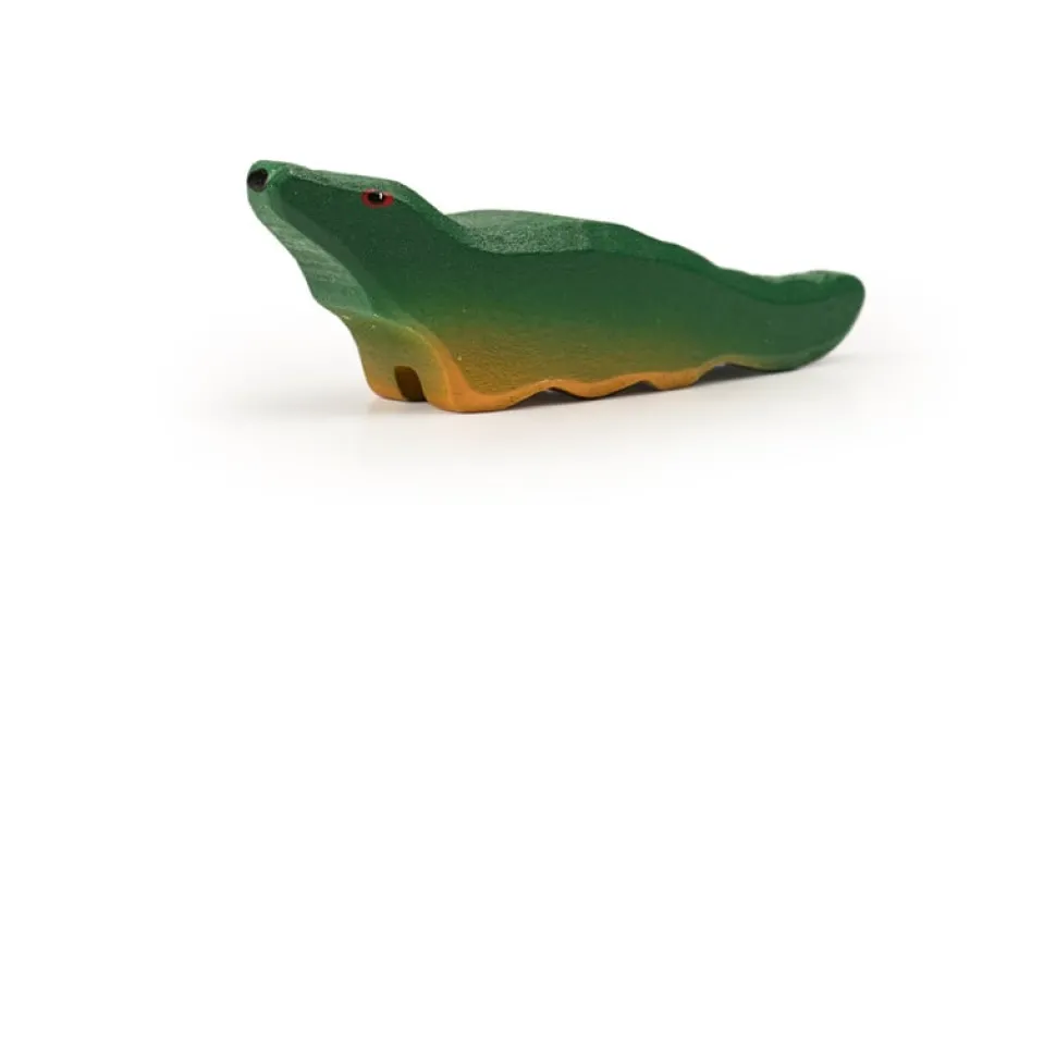 Deze krokodil van Trauffer is met de hand gemaakt van lindehout in Zwitserland, de gebruikte verf is vrij van chemicaliën. De krokodil is robuust genoeg om mee te spelen. Lengte: 10 cm.