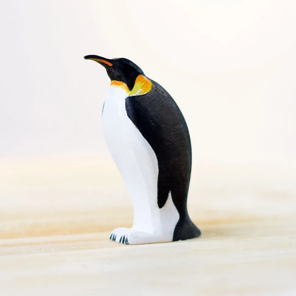 Deze keizerspinguïn is gemaakt van esdoornhout, afgewerkt met niet giftige verf. De mannetjes pinguïn is 8.5 cm hoog.