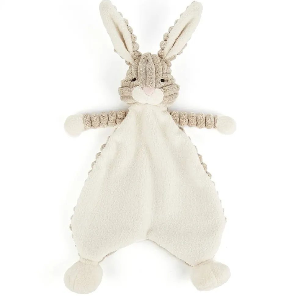Cordy roy baby haas knuffeldoek van Jellycat is geschikt voor de allerkleinsten. Hij heeft zijn armen wijd open om je kleintje te knuffelen. De stof is zijdezacht. Hoogte: 23 cm.