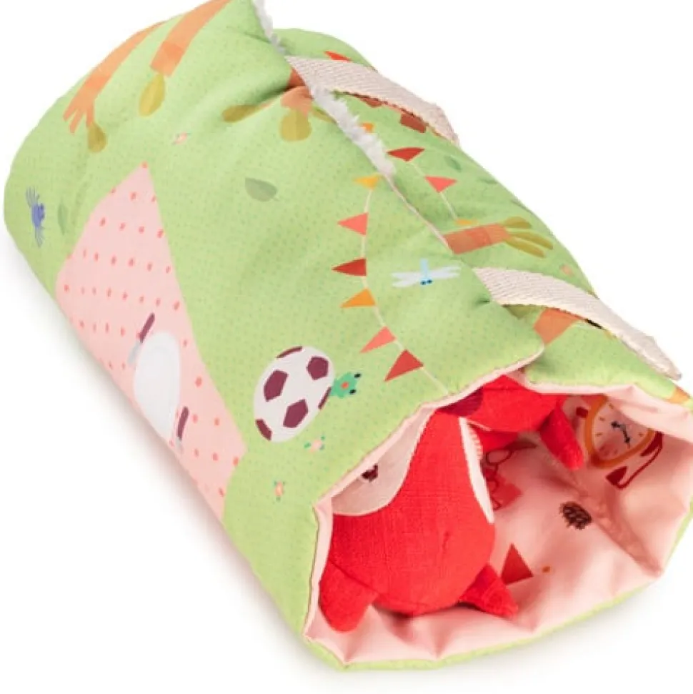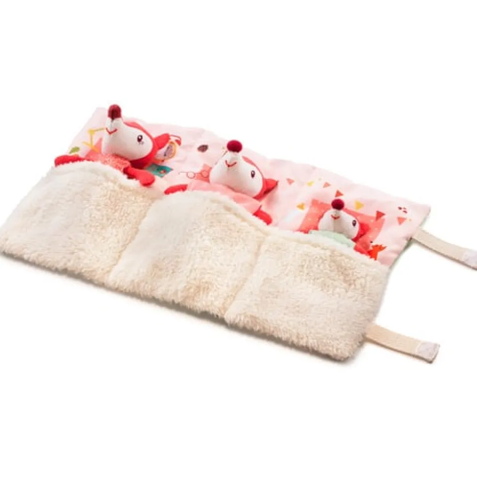 Wat een schattig vosjesgezin deze familie van Alice van Lilliputiens. Het matje en de figuurtjes kunnen gemakkelijk overal mee naar toe genomen worden. Zo kan de kleine telkens weer nieuwe avonturen beleven met deze speelset. De kleertjes van de poppetjes