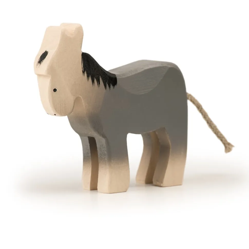 Deze ezel van Trauffer staat rechtop en is met de hand gemaakt van lindehout in Zwitserland, de gebruikte verf is vrij van chemicaliën. De ezel is robuust genoeg om mee te spelen. Afmeting: 11x8x3 cm.