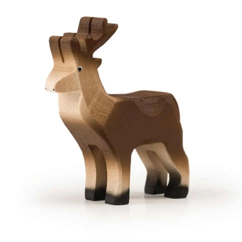 Dit hert van Trauffer is met de hand gemaakt van lindehout in Zwitserland, de gebruikte verf is vrij van chemicaliën. Het hert is robuust genoeg om mee te spelen. Hoogte: 9 cm.