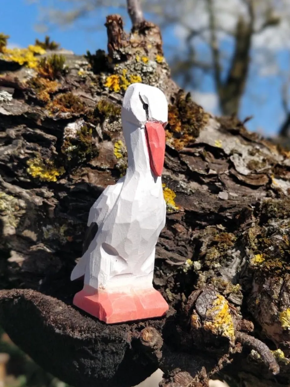 Deze Ooievaar van wudimals is 3,6×2,2×7,1cm groot